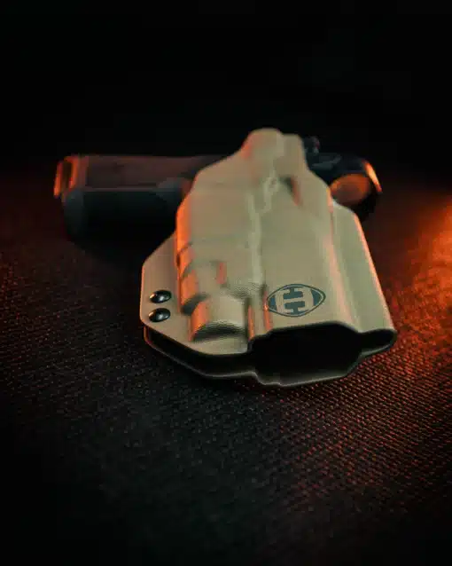 Precision machined molds, Vacuum formed, and hand finished. Bringing technology and craftsman ship together for the perfect fit and function. Adjustable retention and optics ready. Durable and rugged, yet sleek and unique. The best looking and best functioning Light Bearing holster available.